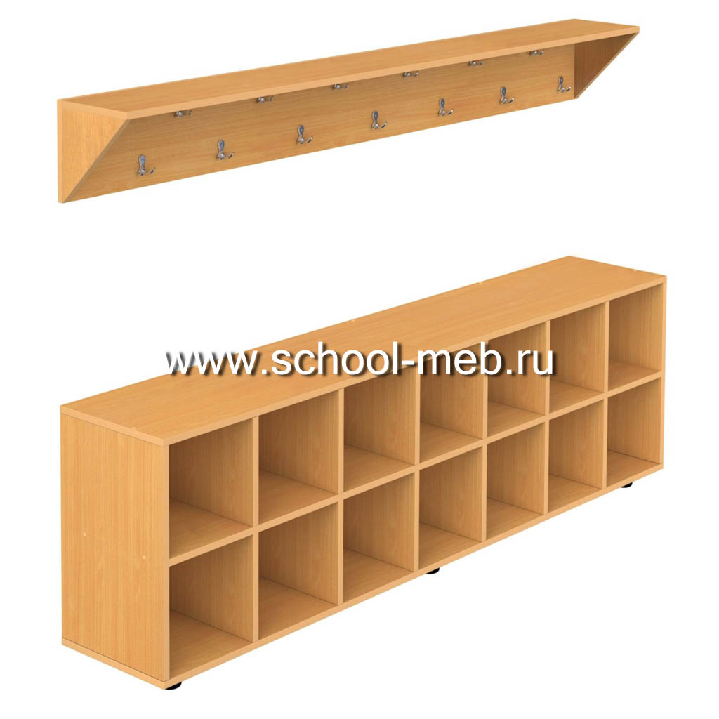 Вешалка — вместительное и функциональное решение для организации хранения одежды и обуви, которое подойдёт для просторной прихожей, раздевалки, офиса или общественного помещения. Каркас изделия изготовлен из ламинированной ЛДСП толщиной 16 мм, что гарантирует прочность и устойчивость конструкции при значительных нагрузках. Торцы всех деталей аккуратно обрамлены кромкой ПВХ толщиной 0,5 мм в цвет основного материала — это защищает края от сколов и истирания, а также придаёт вешалке эстетичный и завершённый вид.