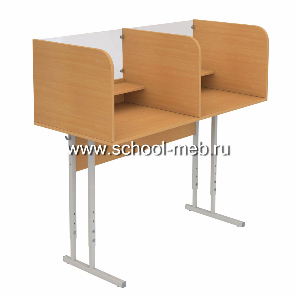 Особенностью данной модели являются боковые ограждения, расположенные на высоте 400 мм. Они помогают организовать рабочее пространство, предотвращая соскальзывание учебных принадлежностей. Прозрачное переднее ограждение, выполненное из оргстекла толщиной 4 мм, обеспечивает визуальную открытость рабочей зоны, сохраняя при этом структурную целостность конструкции.