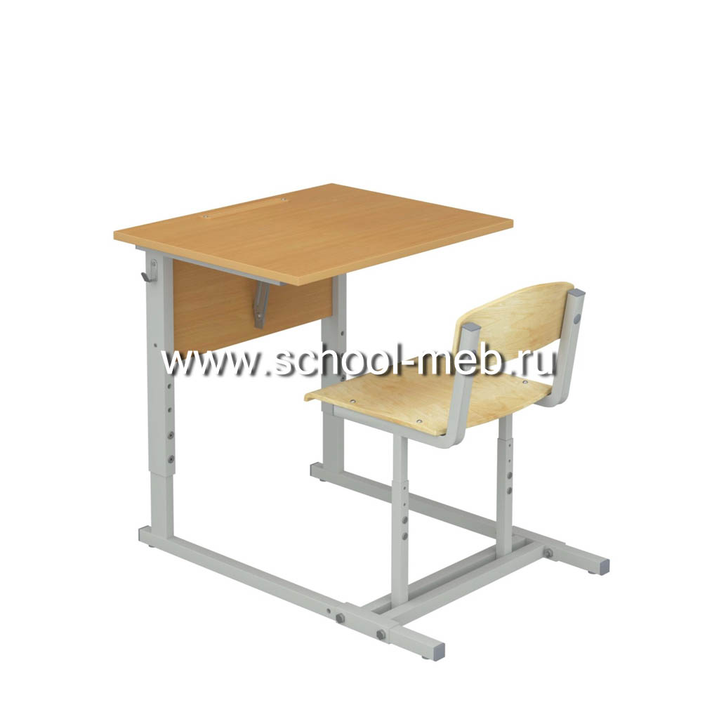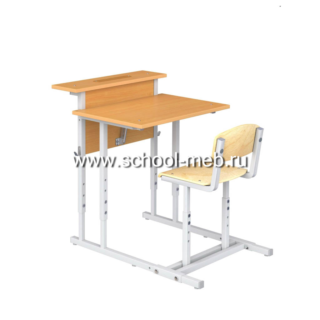 Стол оснащён ступенчатым механизмом трансформации типа «Растомат», который позволяет регулировать наклон крышки столешницы от 0° до 35°. Предусмотрены полка и лоток для письменных принадлежностей.