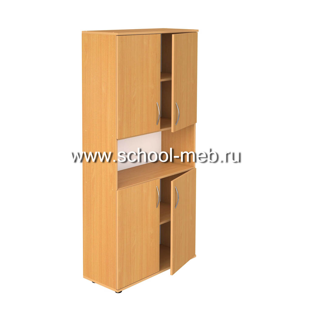 - Закрытые секции с дверцами (верхняя и нижняя части) идеально подходят для хранения конфиденциальных документов или предметов, не предназначенных для общего доступа. Внутри каждой секции расположены полки, позволяющие рационально использовать пространство.- Центральная ниша (открытая часть) удобна для размещения часто используемых материалов — книг, папок, справочников. Такая организация обеспечивает быстрый доступ к необходимым вещам без необходимости открывать дверцы.