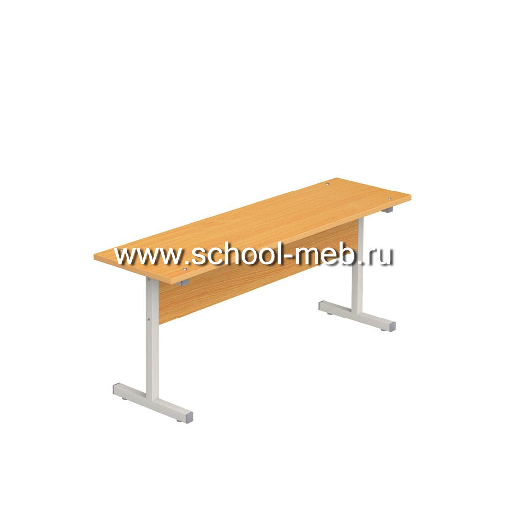 Скамья двух местная для обеденного стола школьной столовой. Скамья выполнена на металлическом каркасе, профильная труба квадратного сечения 25х25мм. Защитное — декоративное покрытие — полимерная эмаль светло-серого цвета. Сидение скамьи изготовлено из ламинированного ДСП, торцы сидения оклеены кромкой ПВХ толщиной 2 мм. Сидение скамьи крепится к металлическому каркасу с помощью болтового соединения.