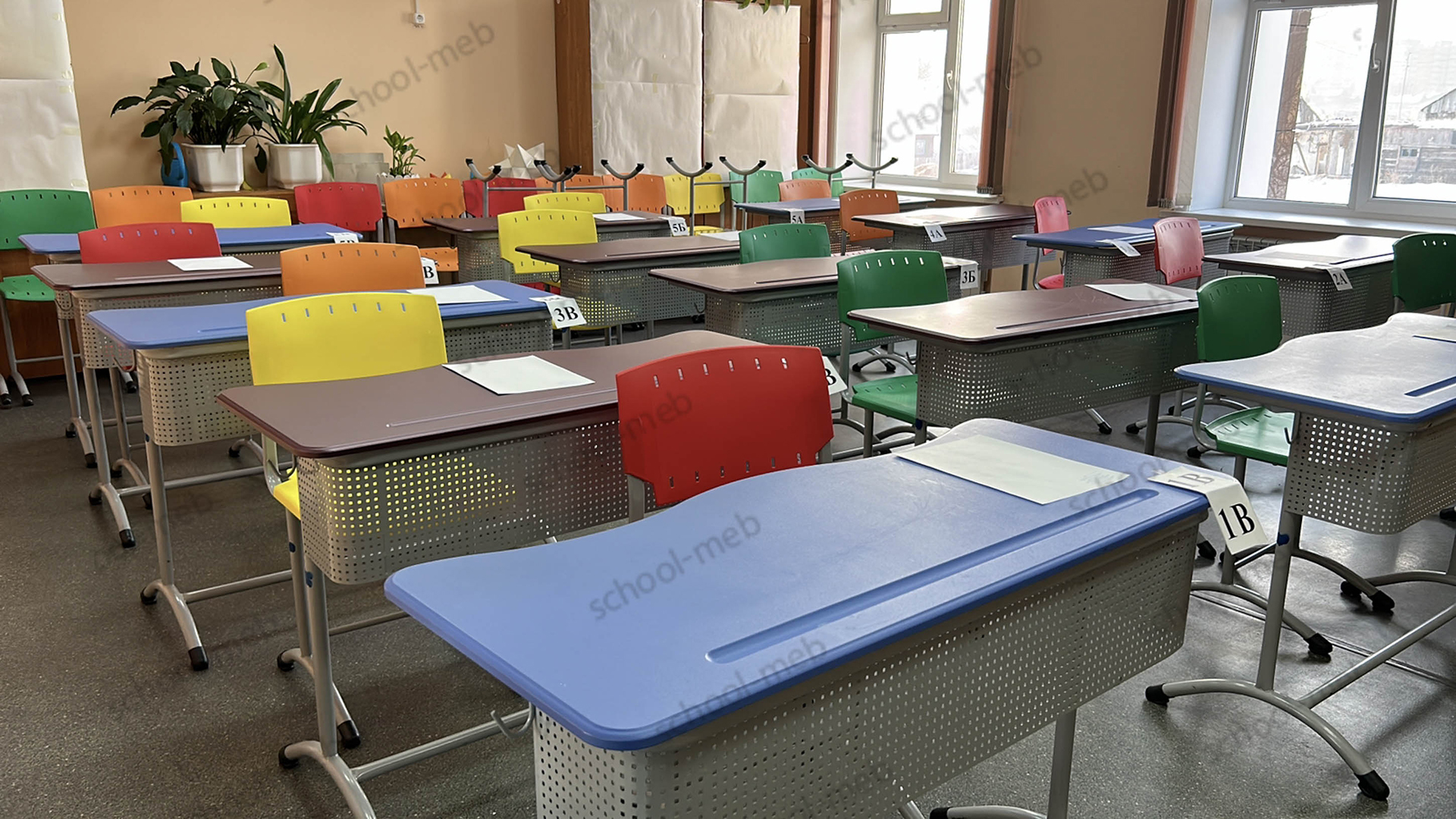 Высота парты регулируется и соответствует ростовой группе: 2-4 (520-580-640 мм), 3-5 (580-640-700 мм), 4-6 (640-700-760 мм), 5-7 (700-760-820 мм).