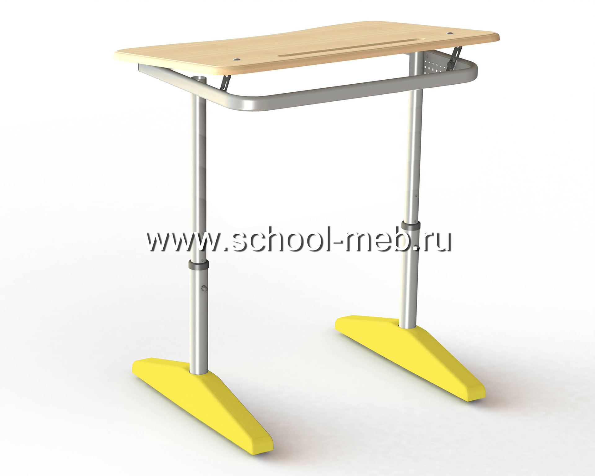 Столешница сделана из ламинированного МДФ толщиной не менее 16 мм. Все углы столешницы скруглены, по периметру столешницы сделана фрезеровка, столешница снабжена дугообразными эргономичными вырезами со стороны посадки ученика и фрезерованным желобом под карандаши. Размеры столешницы 700х500мм для одноместной парты. Столешница к каркасу крепится через две карточные петлишестью саморезамис пресс шайбой 4.2 х 16 (DIN968).