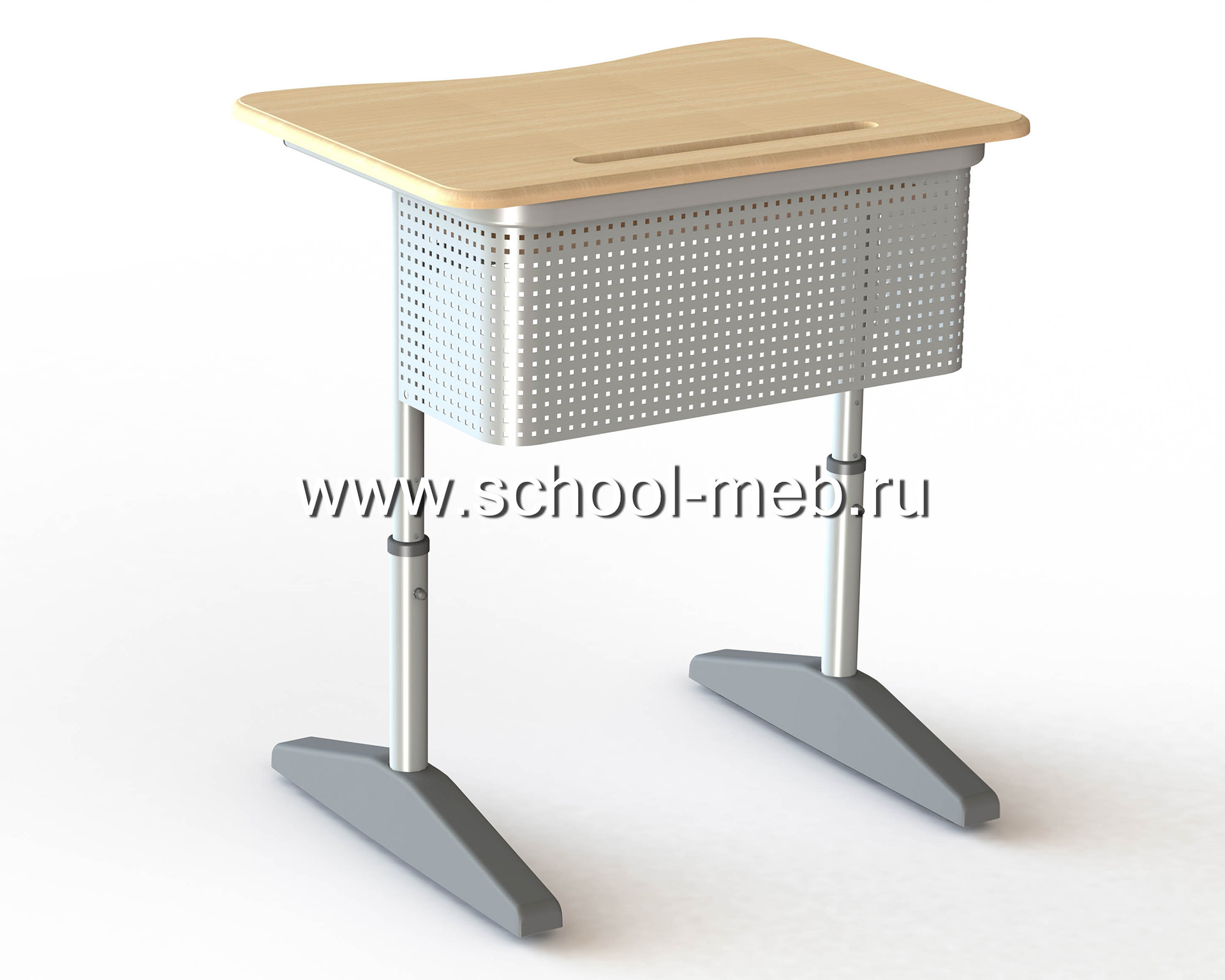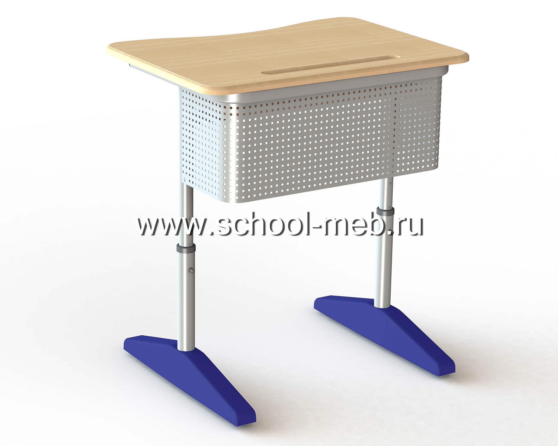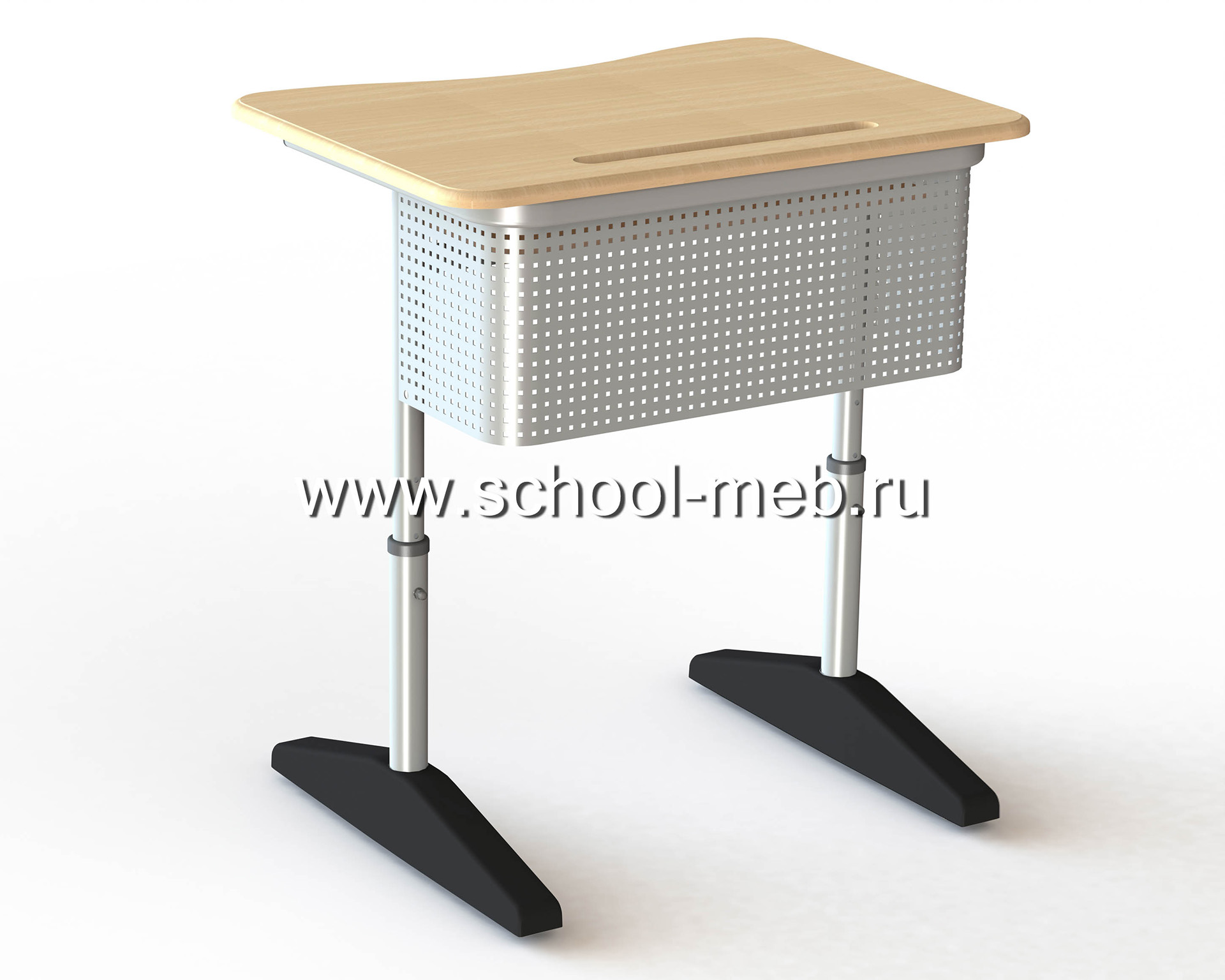 Опорные ноги нижней части каркаса оборудованы декоративным пластиковым коробом 525х85х55 мм. В металлическое основание в кручины резьбовые пластиковые опоры с металлическим оцинкованным резьбовым стержнем М8, изготавливаемые из поливинилхлорида, цвет черный. Опоры предназначены обеспечить сохранность напольного покрытия. Столешница сделана из ламинированного МДФ толщиной не менее 16 мм. Все углы столешницы скруглены, по периметру столешницы сделана фрезеровка, столешница снабжена дугообразными эргономичными вырезами со стороны посадки ученика и фрезерованным желобом под карандаши. Размеры столешницы 700х500мм для одноместной парты и 1200 х 500 мм для двухместной парты. Столешница к каркасу крепится через две карточные петлишестью саморезамис пресс шайбой 4.2 х 16 (DIN968).