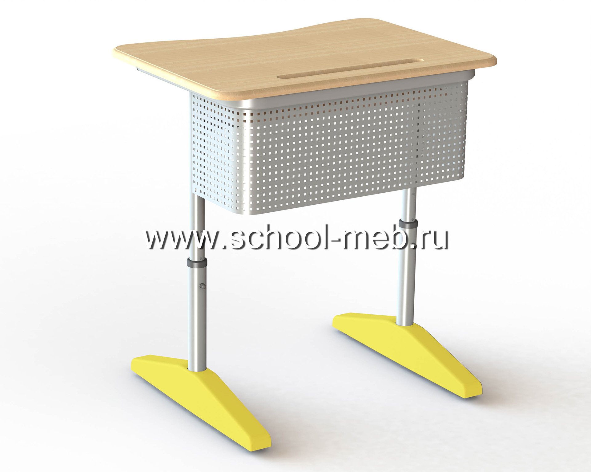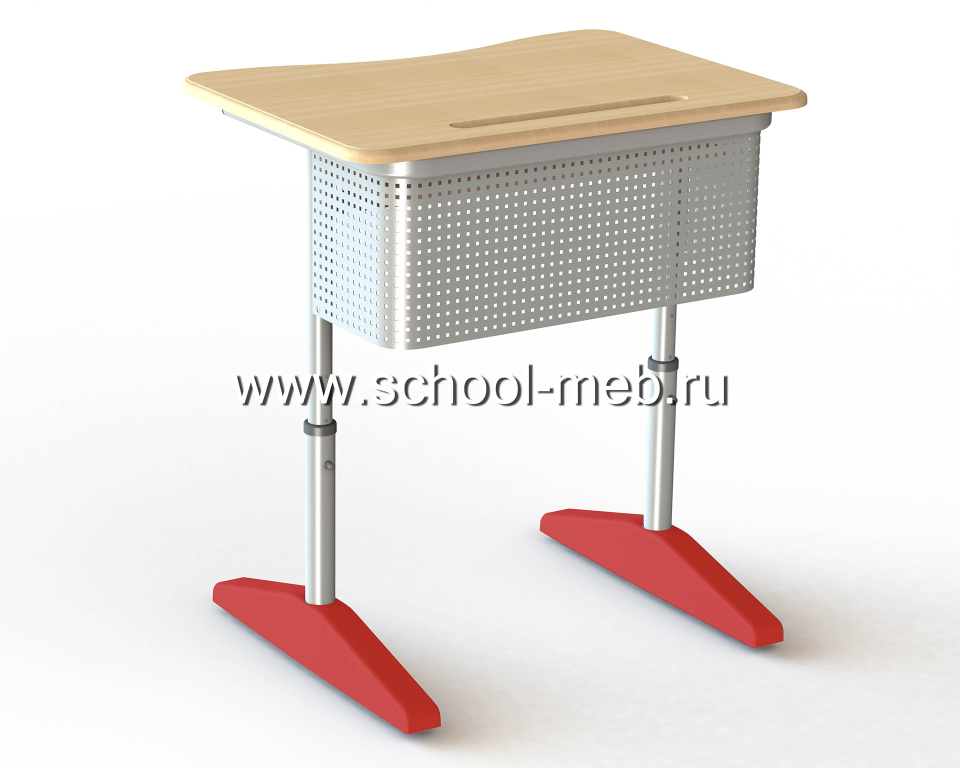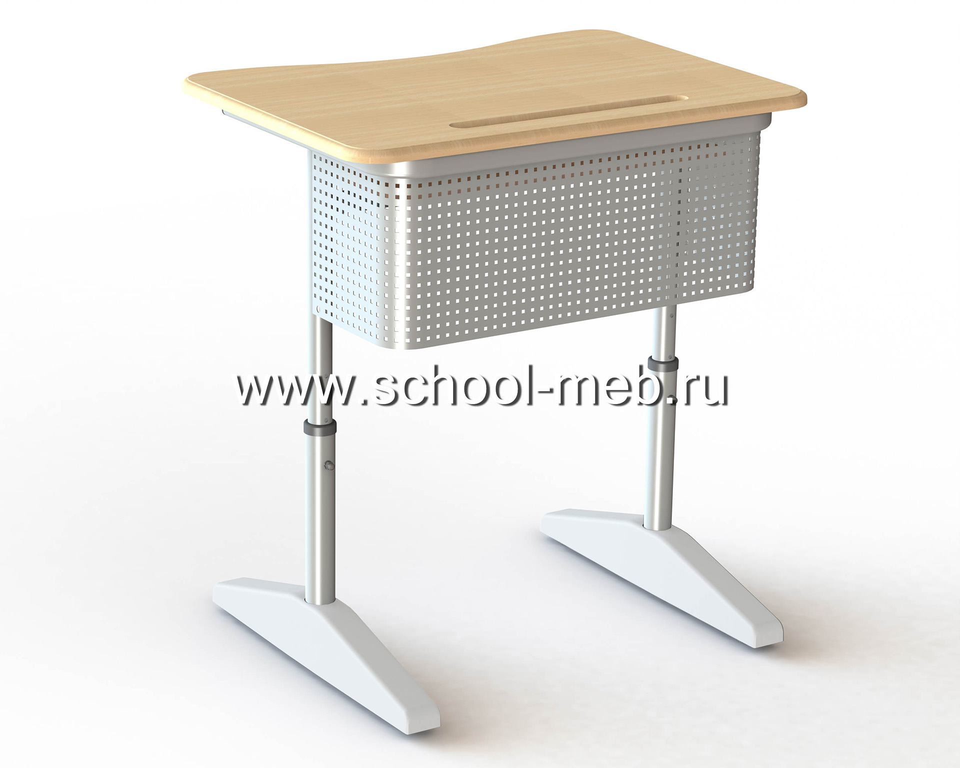 Опорные ноги нижней части каркаса оборудованы декоративным пластиковым коробом 525х85х55 мм. В металлическое основание в кручины резьбовые пластиковые опоры с металлическим оцинкованным резьбовым стержнем М8, изготавливаемые из поливинилхлорида, цвет черный. Опоры предназначены обеспечить сохранность напольного покрытия. Столешница сделана из ламинированного МДФ толщиной не менее 16 мм. Все углы столешницы скруглены, по периметру столешницы сделана фрезеровка, столешница снабжена дугообразными эргономичными вырезами со стороны посадки ученика и фрезерованным желобом под карандаши. Размеры столешницы 700х500мм для одноместной парты и 1200 х 500 мм для двухместной парты. Столешница к каркасу крепится через две карточные петлишестью саморезамис пресс шайбой 4.2 х 16 (DIN968).
