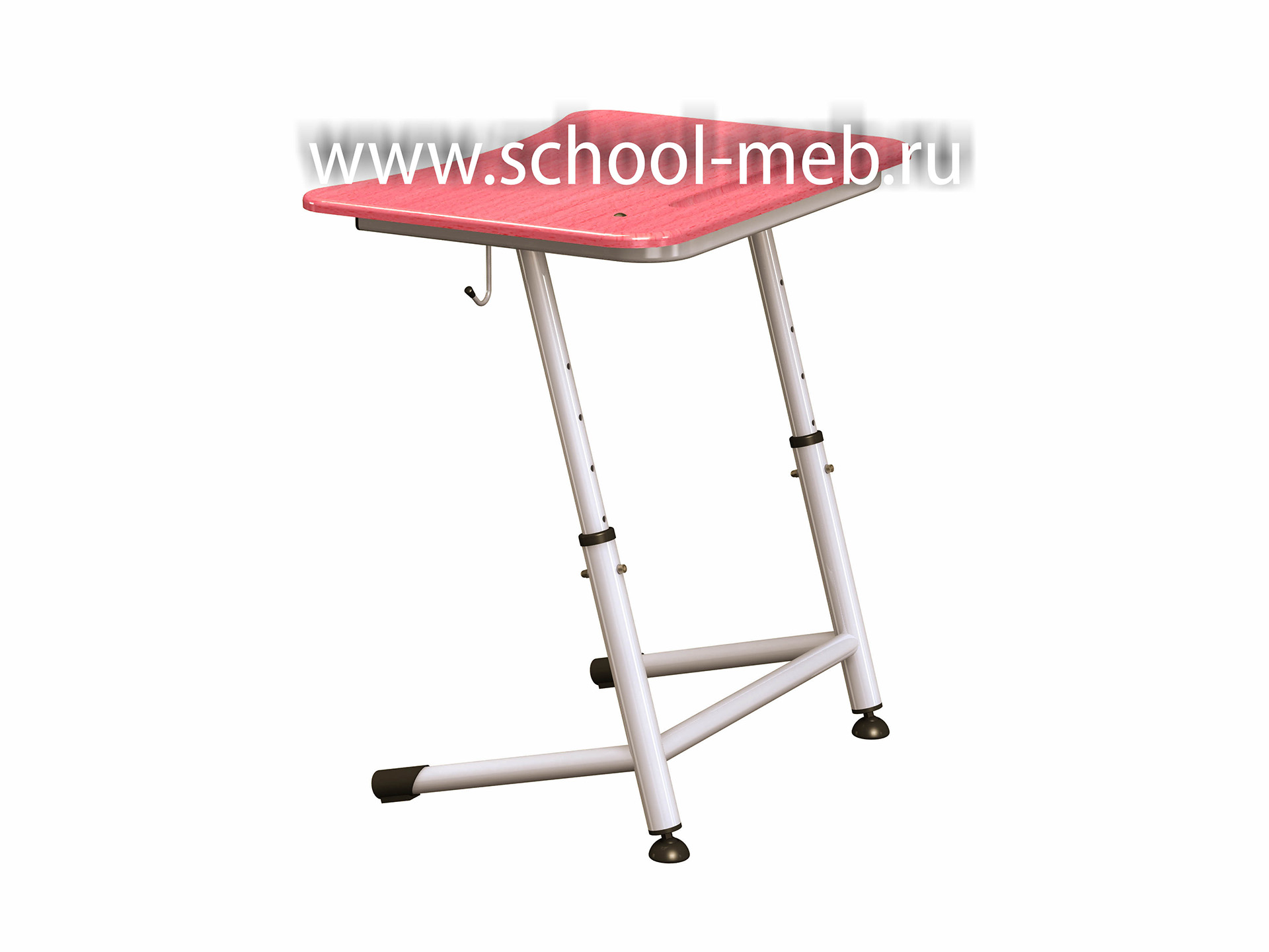 Регулировка высоты обеспечивается телескопическим движением труб. Регулировочный механизм на каждой опорной ноге фиксируется винт М6 (DIN7420) с шайбами Д6 (DIN125) и гайкой М6 (DIN1587).Верхняя часть каркаса изготовлена из электросварной плоскоовальной трубы 30х15 мм толщиной 1,5мм, труба с торцов снабжена заглушками. Труба согнута в «П»-образную раму и имеет два сгиба 90 градусов, внешний радиус гиба 70мм. Для крепления столешницы на верхней обвязке каркаса парты используются две карточные петли, петли закреплены на обвязке сваркой.