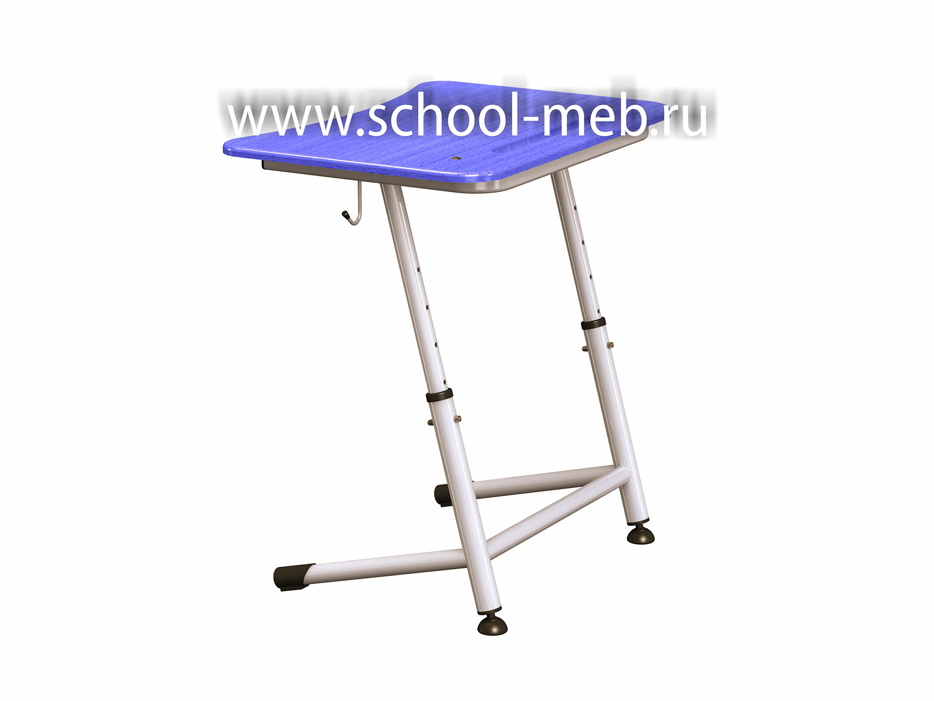 Регулировка высоты обеспечивается телескопическим движением труб. Регулировочный механизм на каждой опорной ноге фиксируется винт М6 (DIN7420) с шайбами Д6 (DIN125) и гайкой М6 (DIN1587).Верхняя часть каркаса изготовлена из электросварной плоскоовальной трубы 30х15 мм толщиной 1,5мм, труба с торцов снабжена заглушками. Труба согнута в «П»-образную раму и имеет два сгиба 90 градусов, внешний радиус гиба 70мм. Для крепления столешницы на верхней обвязке каркаса парты используются две карточные петли, петли закреплены на обвязке сваркой.