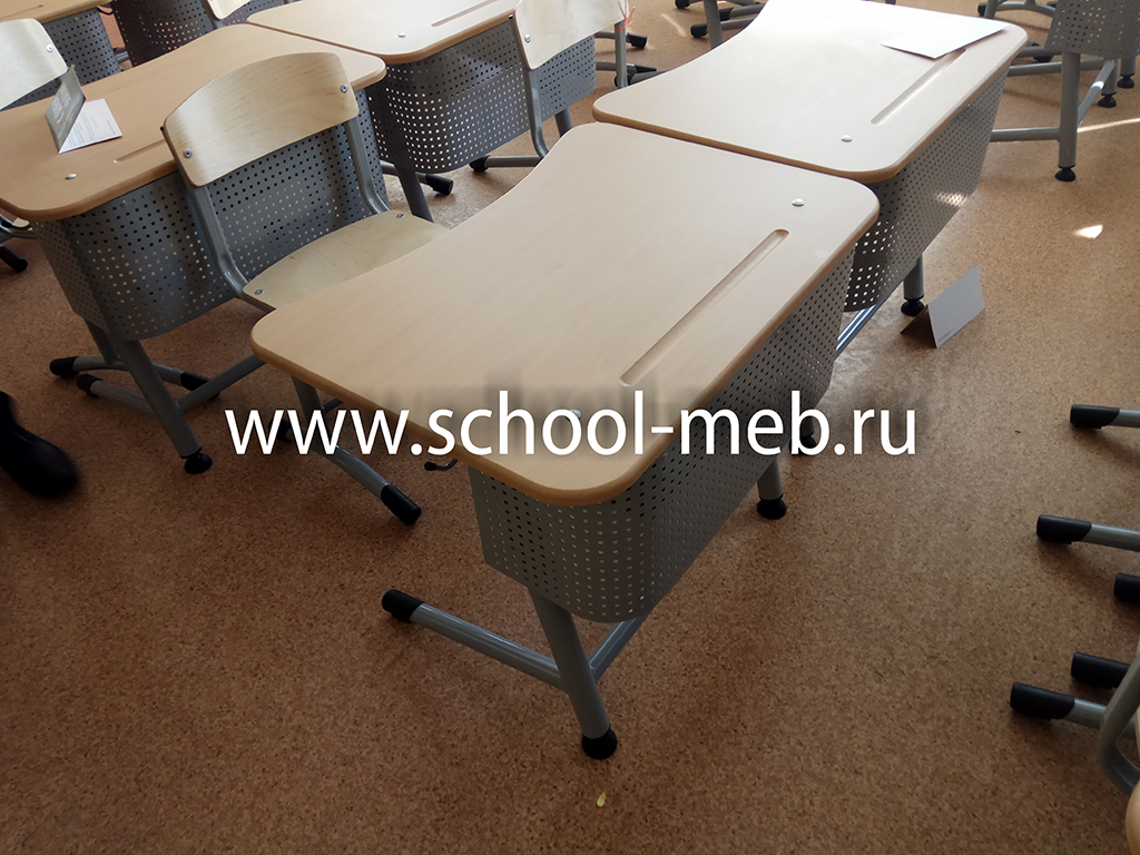 Парта снабжена «П» - образным экраном, высотой с «П»-образной рамой 247 мм, состоящим из перфорированной стали толщиной 1мм и высотой 243 мм, перфорация квадратного сечения 5 х 5 мм с шагом 14 мм, угловой элемент имеет радиусный изгиб повторяющий радиусный изгиб верхней обвязки каркаса, экран крепится к каркасу сваркой.
