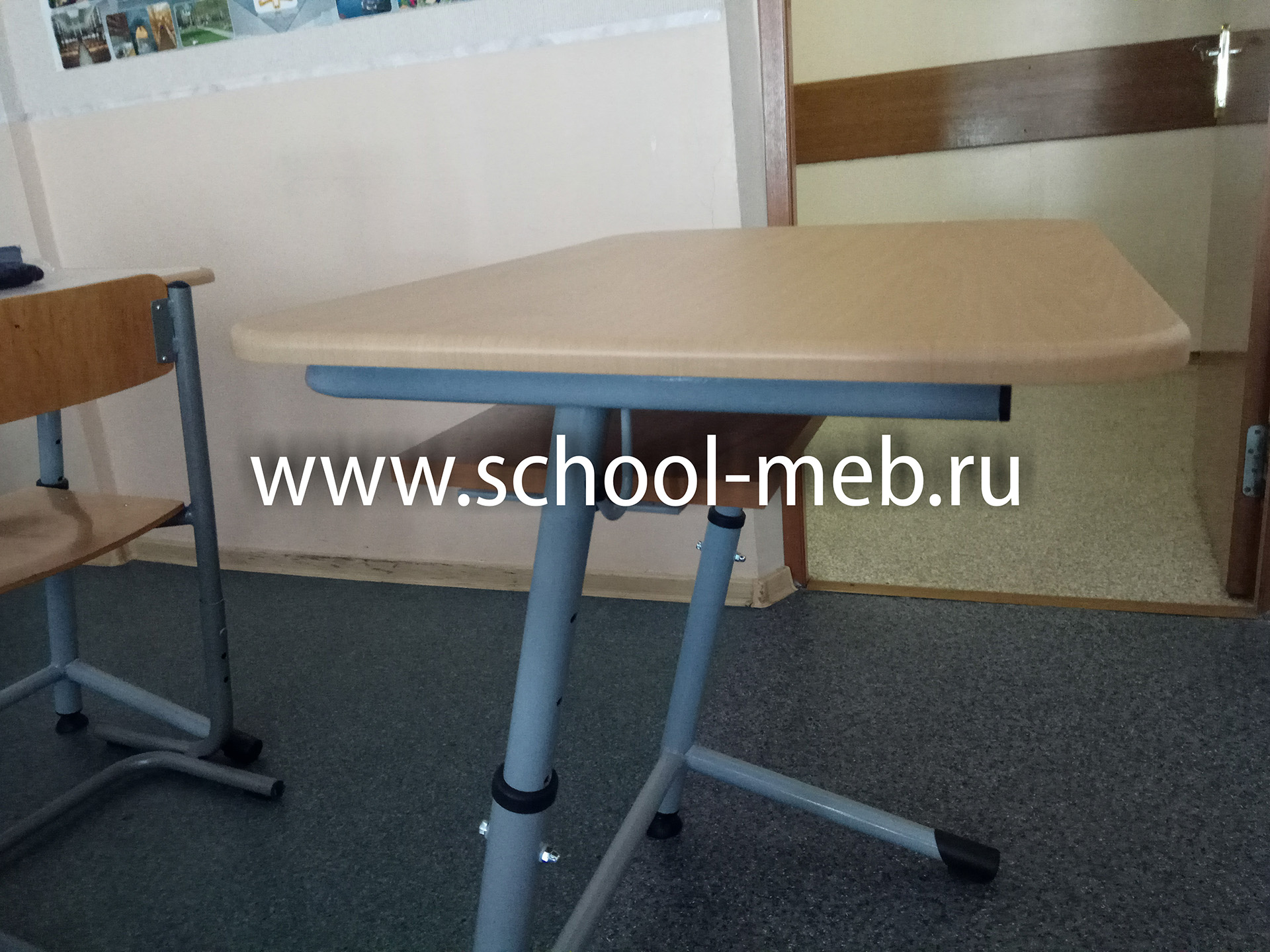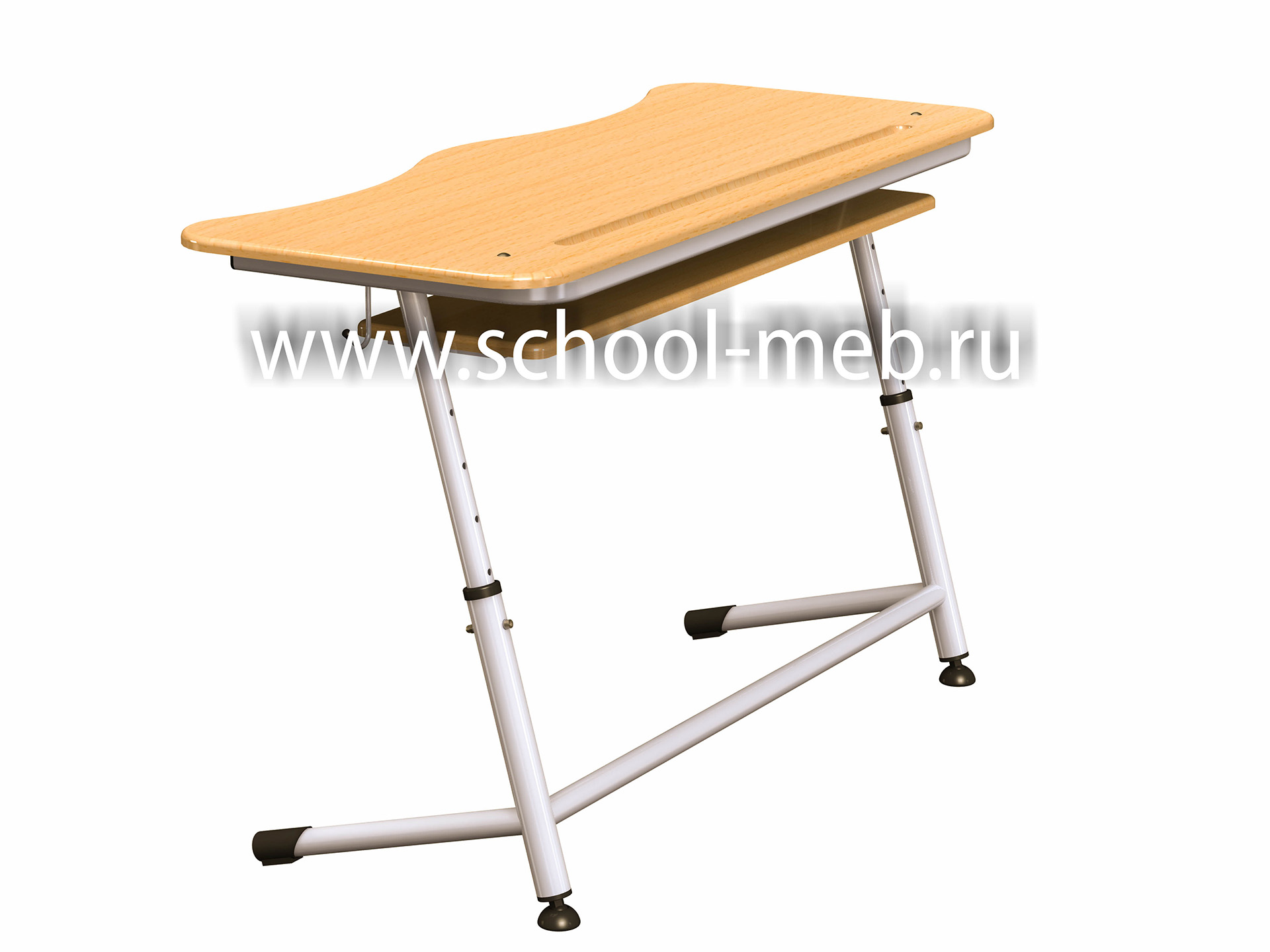 Столешница сделана из ламинированного МДФ толщиной не менее 16 мм. Все углы столешницы скруглены, по периметру столешницы сделана фрезеровка, столешница снабжена дугообразными эргономичными вырезами со стороны посадки ученика и фрезерованным желобом под карандаши. Размеры столешницы 1200х500мм. Столешница к каркасу крепится через две карточные петли шестью саморезами с пресс шайбой 4.2 х 16 (DIN968).