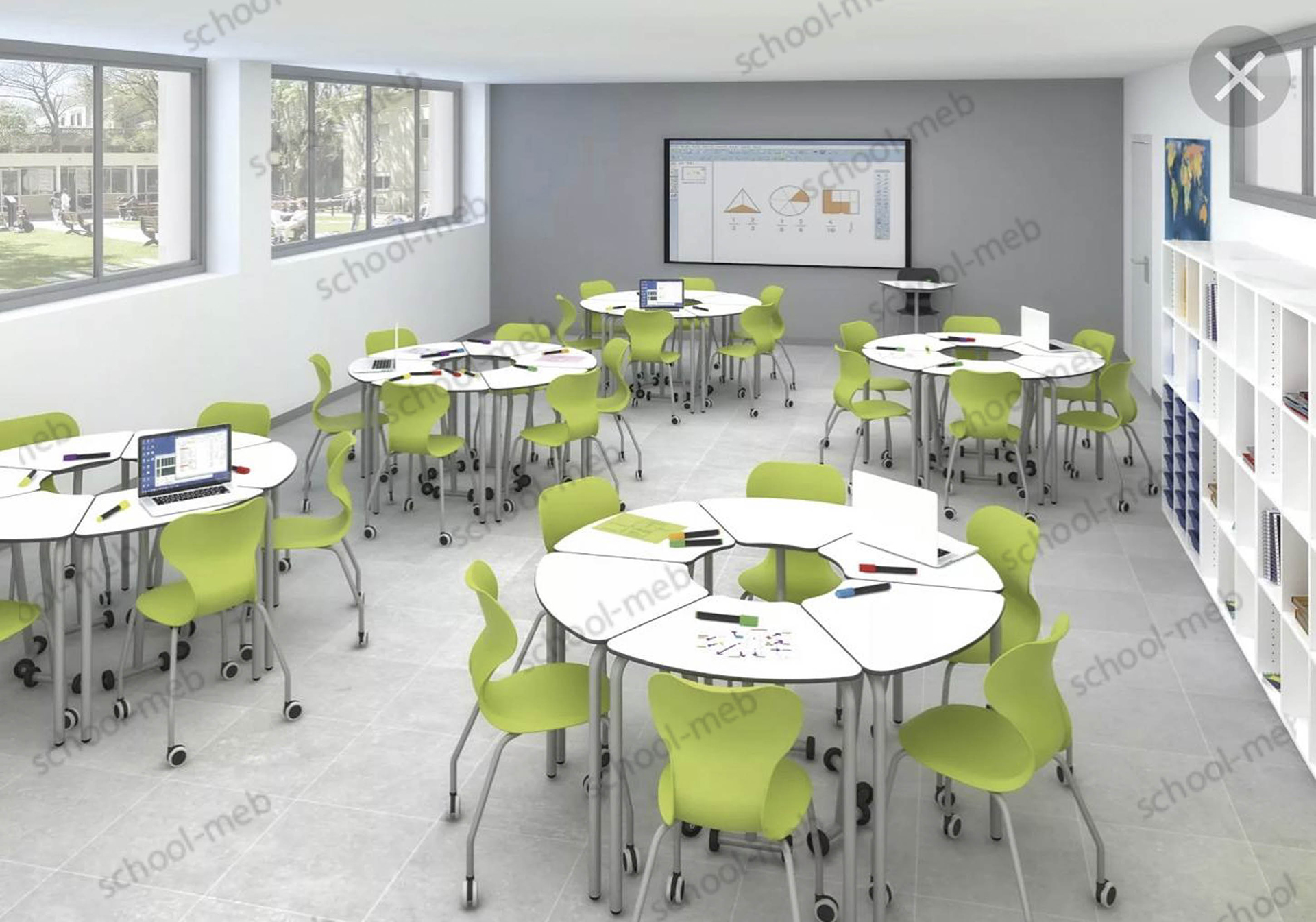 Стол Модуль 1 — это инновационное решение для динамичного учебного пространства, коворкинга или современного офиса. Благодаря оригинальной форме столешницы и мобильной конструкции он позволяет создавать гибкие, адаптивные конфигурации — от индивидуального рабочего места до групповых островков.