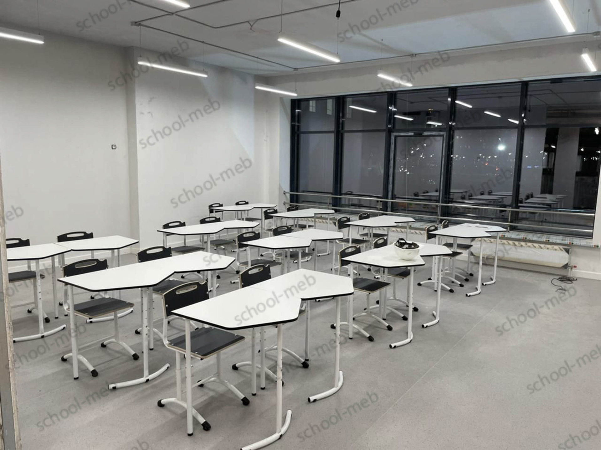 Высота сиденья стула регулируется и соответствует ростовой группе: 2-4 (300-340-380), 3-5 (340-380-420 мм), 4-6 (380-420-460), 5-7 (420-460-500).